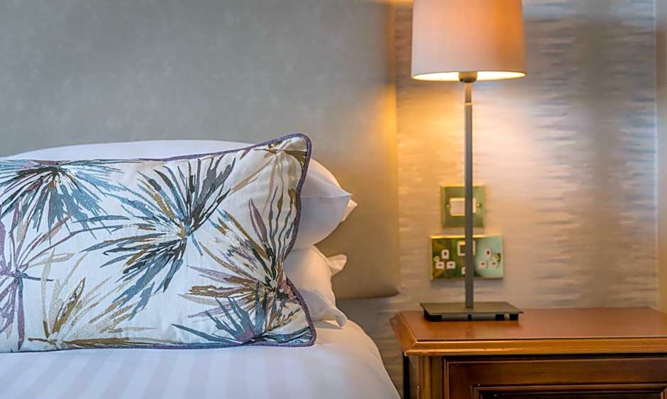 An elegantly furnished room with a satellite TV, a hairdryer and tea and coffee making facilities.